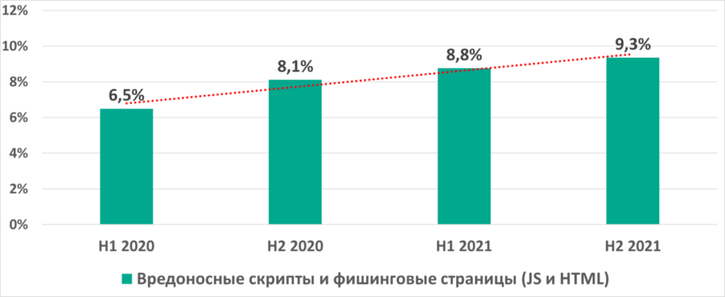 - Вредоносные скрипты и фишинговые страницы — в 1,4 раза —