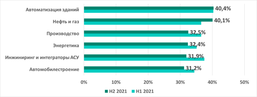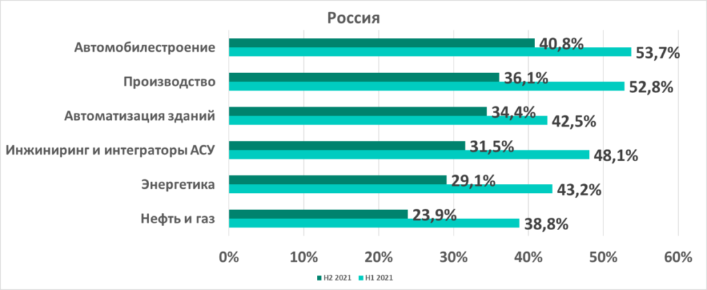 По тем же причинам во втором полугодии 2021 в России уменьшились показатели исследуемых индустрий.