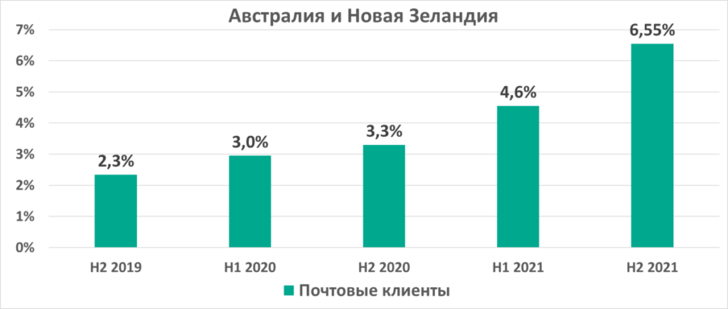 в Австралии и Новой Зеландии за два года он вырос почти в три раза.