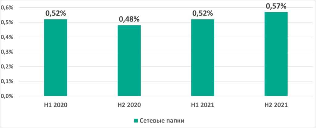 Сетевые папки — один из минорных источников вредоносных объектов.