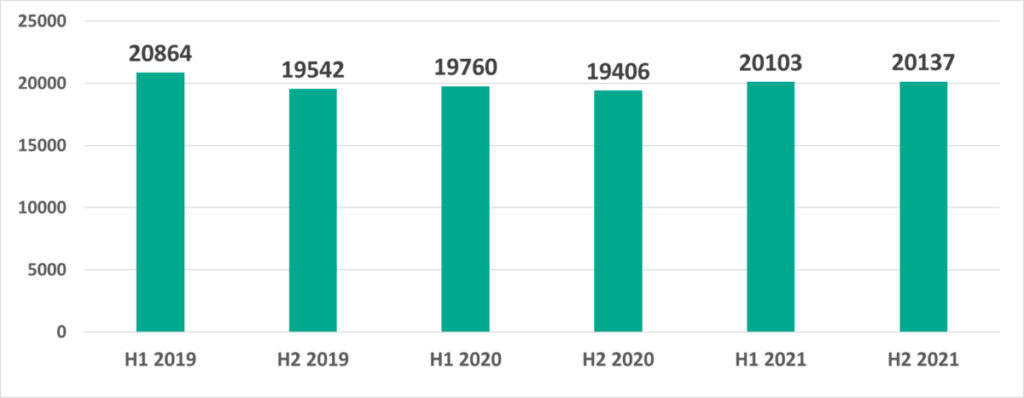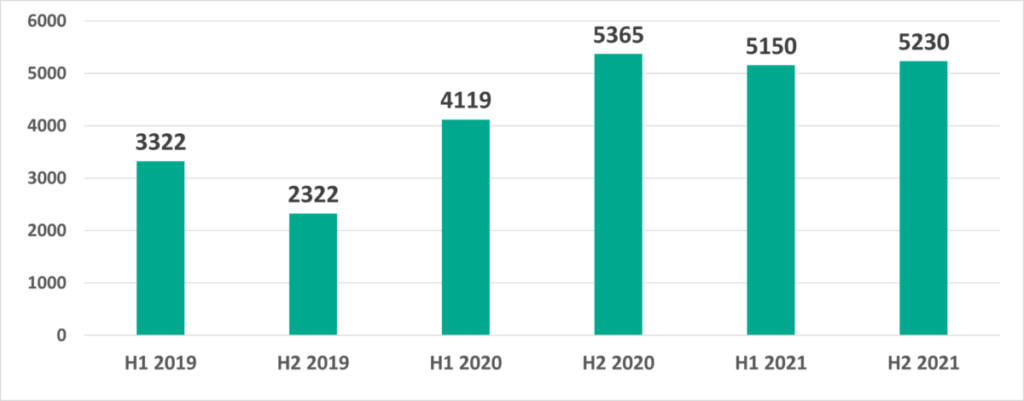 | Показатель | H1 2021 | H2 2021 | 2021 |