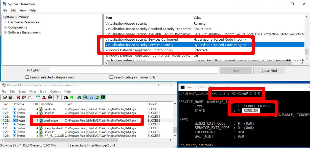 Интересным с точки зрения подхода является атака типа Bring Your Own Vulnerable Driver (BYOVD) – установка уязвимого драйвера на целевую систему в ходе развития атаки. Такой тип атаки сложен для обнаружения тем, что используется легитимный «доверенный» (и потому, как правило, менее тщательно проверяемый автоматическими защитными средствами) код с цифровой подписью, который имеет, к тому же, и высокие привилегии (работает на уровне ядра операционной системы). Интересно, что рекомендованный Microsoft способ блокировки используемых в атаках уязвимых драйверов с помощью технологии HVCI имеет большое количество недокументированных ограничений, таких как проблемы совместимости формата блок-листов и неработающее их автоматическое обновление средствами Windows Update, – всё это делает тактику эффективной для атакующих.
