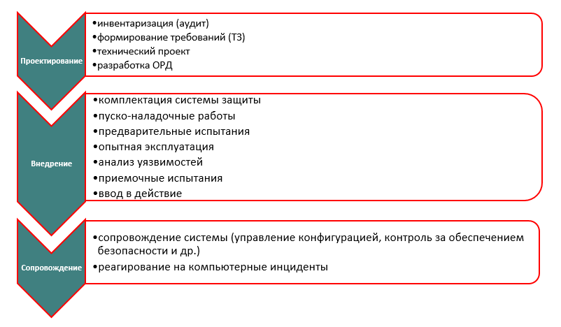 Рисунок 2. Состав и содержание этапов создания системы защиты