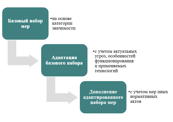 Содержание перечисленных мер конкретизируется в приложении к Требованиям и определяется в зависимости от категории значимости объекта КИИ. При этом базовый набор мер целесообразно адаптировать с учетом особенностей конкретного объекта КИИ и при необходимости дополнять (см. рисунок 3).