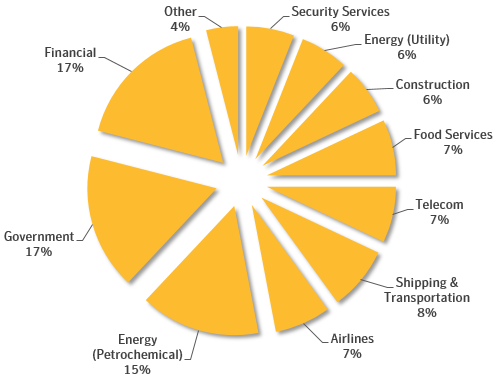 Распределение атакованных организаций в мире и по отраслям (Источник: McAfee)