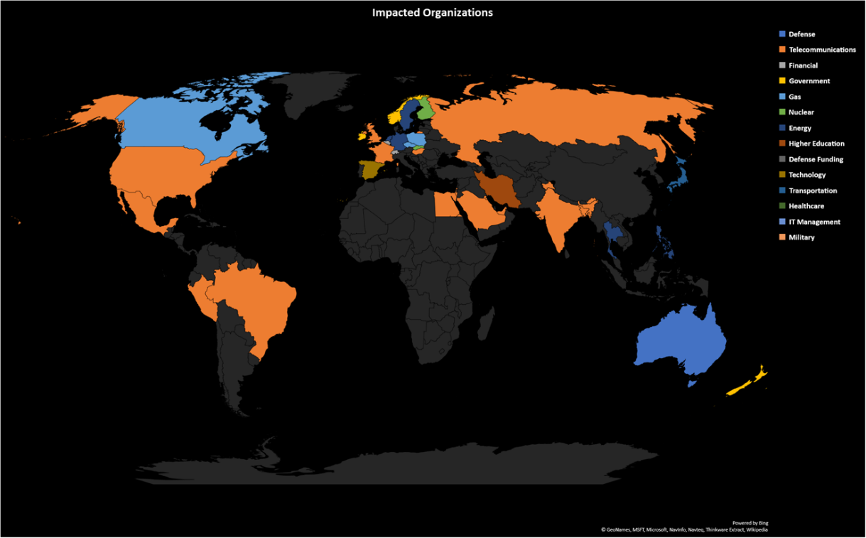 По данным экспертов, в период с конца сентября по середину ноября 2018 года жертвами киберпреступников стали более 130 сотрудников в 30 организациях в основном в Пакистане и Турции. Атакам также подвергались организации в России, Саудовской Аравии, Афганистане, Иордании и других странах.
