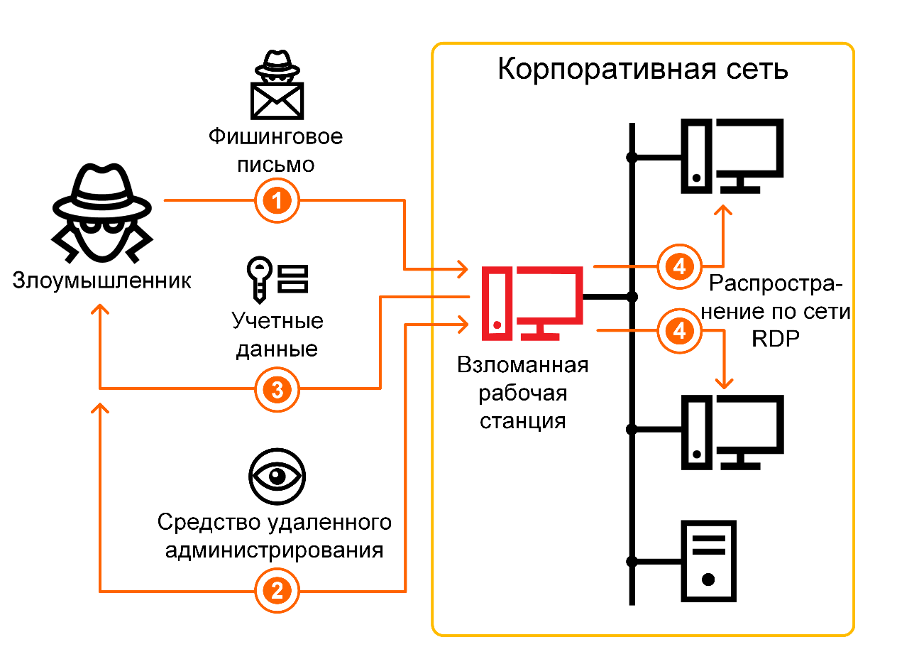 На компьютер жертвы устанавливается легитимное ПО для удаленного администрирования — TeamViewer или Remote Manipulator System/Remote Utilities (RMS). Графический интерфейс этих программ скрывается вредоносным ПО, что позволяет злоумышленникам управлять зараженной системой незаметно для пользователя.