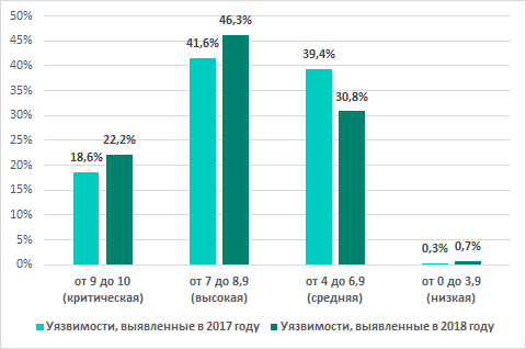 В сравнении с данными прошлого года доля уязвимостей, имеющих высокую и критическую степень риска, возросла.