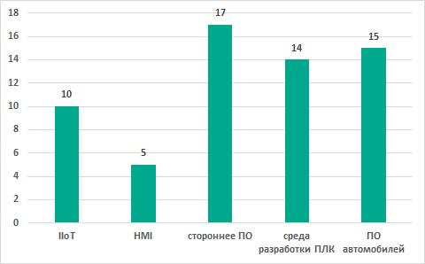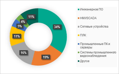 Среди уязвимых компонентов также промышленные компьютеры и серверы (5%), системы промышленного видеонаблюдения (4%), различные устройства полевого уровня, и РЗА.