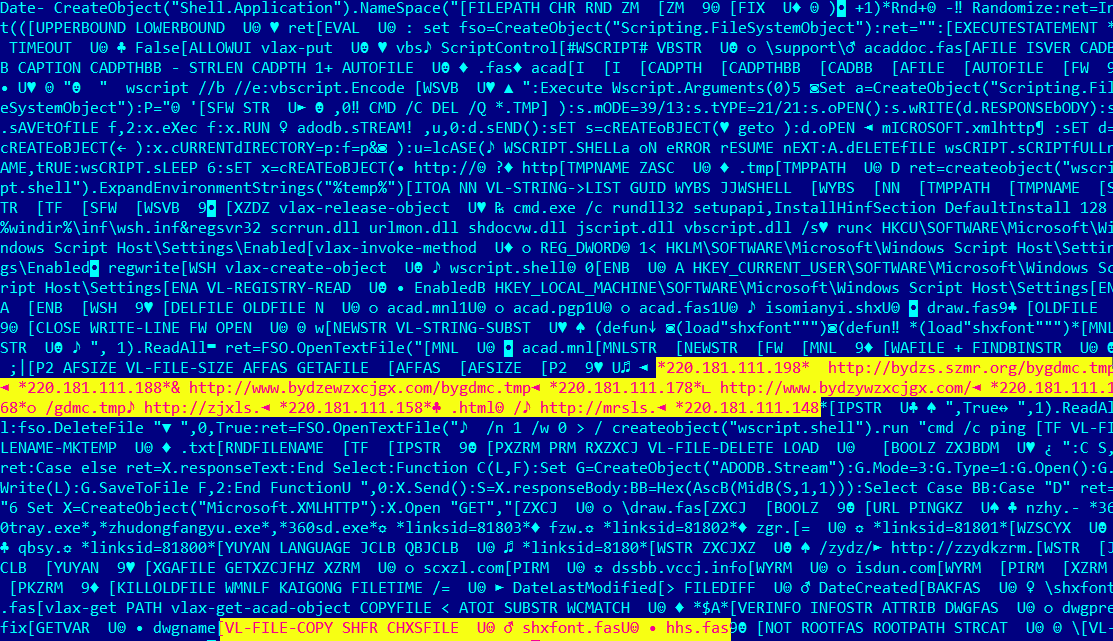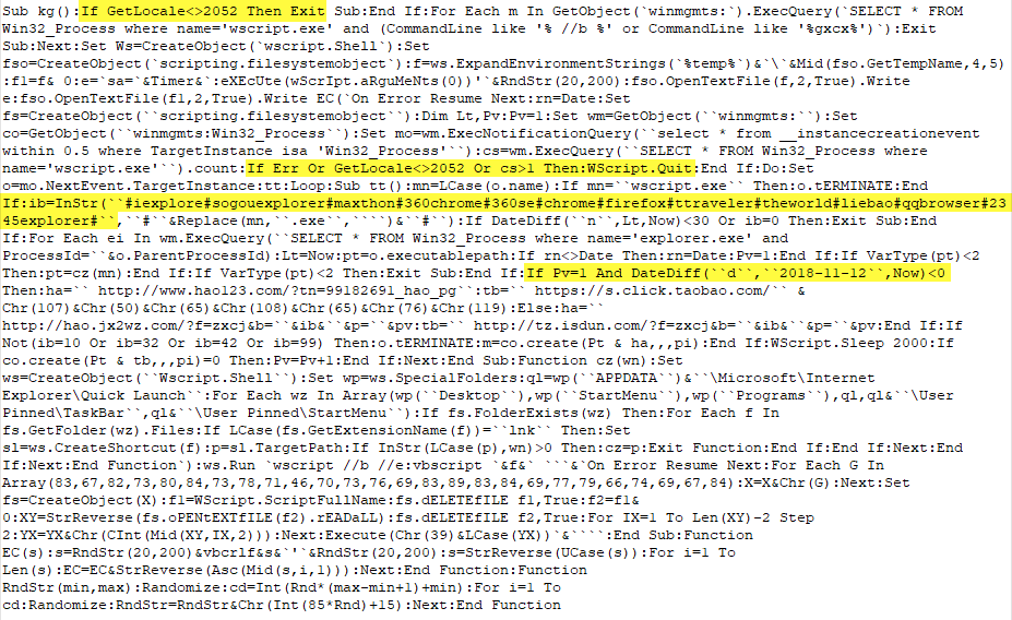 Командные серверы ботнета активны и используются для доставки на зараженный компьютер произвольного вредоносного ПО следующего этапа. Единственная известная на сегодняшний день вредоносная нагрузка второго этапа, обнаруженная исследователями безопасности, – это VB скрипт, используемый для перехода в браузере пользователя по произвольной URL-ссылке и изменения настроек домашней страницы браузера.
