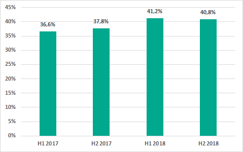 Во втором полугодии 2018 в мире продукты «Лаборатории Касперского» предотвратили вредоносную активность на 40,8% компьютеров АСУ. По сравнению с первым полугодием мы наблюдаем незначительное изменение этого показателя – снижение на 0,37 п.п.