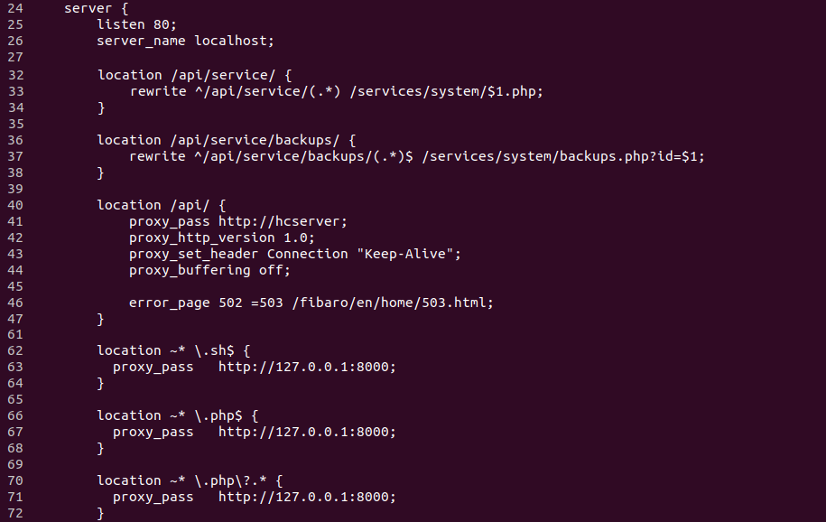 Также в файле конфигурации веб-сервера nginx можно увидеть, что одна часть запросов проксируется на локальный сервер, написанный на C++, а другая часть – на lighttpd, который исполняет код на языке PHP при помощи mod_cgi. Эти обработчики запросов на языке PHP называются сервисами.