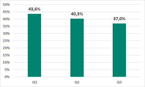 В данных по кварталам видно, что процент компьютеров, на которых было заблокировано вредоносное ПО, с начала 2019 года снизился на 6.6 п.п., но всё же находится на достаточно высоком уровне.