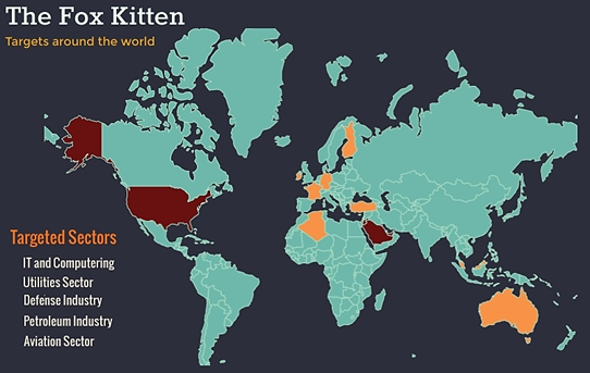 В феврале 2020 года компания ClearSky описала кампанию, имевшую место в последнем квартале 2019 года и нацеленную на компрометацию сетей организаций, работающих в сферах ИТ, телекоммуникаций и безопасности, а также в нефтегазовом, авиационном и государственном секторах по всему миру. Исследователи приписывают эту кампанию иранским злоумышленникам. Кампания Fox Kitten проводилась в целях разведки, но также могла использоваться для распространения вредоносных программ-вайперов, таких как ZeroCleare и Dustman, связанных с группой APT34. Было обнаружено совпадение инфраструктуры Fox Kitten и других группировок, действующих на Ближнем Востоке: APT33 и APT34. Это позволяет предположить, что группировки сотрудничают как в инфраструктуре, так и, возможно, за ее пределами.