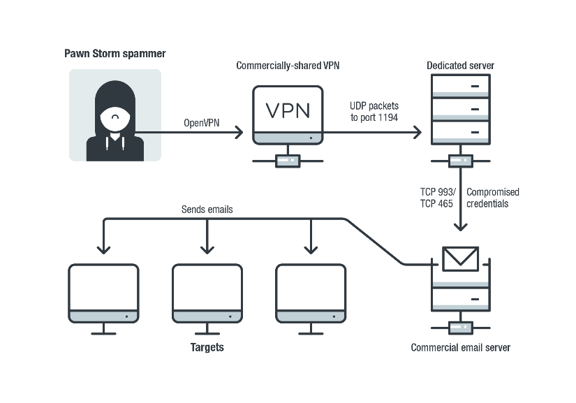 В марте компания TrendMicro описала кампанию APT-группировки Sofacy (также известна как Pawn Storm, Fancy Bear, Sednit, STRONTIUM и APT28), нацеленную на организации в разных частях мира. В течение 2019 и 2020 годов атакующие использовали взломанные адресе электронной почты для рассылки фишинговых писем с целью кражи учетных данных. Большинство скомпрометированных систем принадлежало оборонным компаниям Ближнего Востока. Жертвами этой кампании стали также организации в сфере транспорта, а также в коммунальном и государственном секторах.