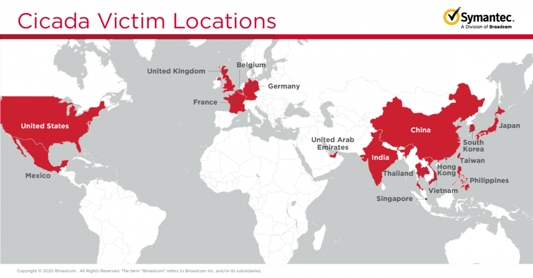 В ноябре компания Symantec сообщила о кампании продолжительностью один год, нацеленной на японские компании, включая дочерние компании в 17 странах по всему миру, которая приписывается группировке Cicada (также известной как APT10, Stone Panda и Cloud Hopper). Цели этой кампании относятся к разным отраслям, включая автомобильную, фармацевтическую, машиностроительную, а также работу поставщиков управляемых услуг (MSP).