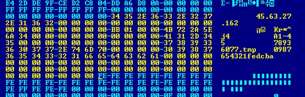 После запуска вредоносная программа расшифровывает область своего исполняемого файла, содержащую конфигурационную информацию: