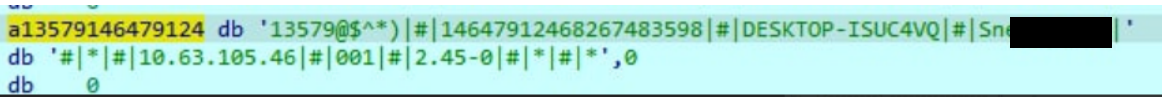 | A1-45 | Идентификатор жертвы, который передаётся вредоносной программой на сервер управления |