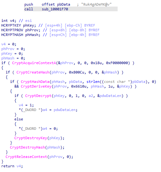 Исполняемые файлы Cotx зашифрованы алгоритмом AES256, для расшифровки используется ключ, указанный в коде вредоносной библиотеки: