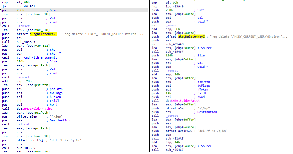 Обе вредоносные программы имеют идентичную функциональность и различаются лишь отдельными частями кода.