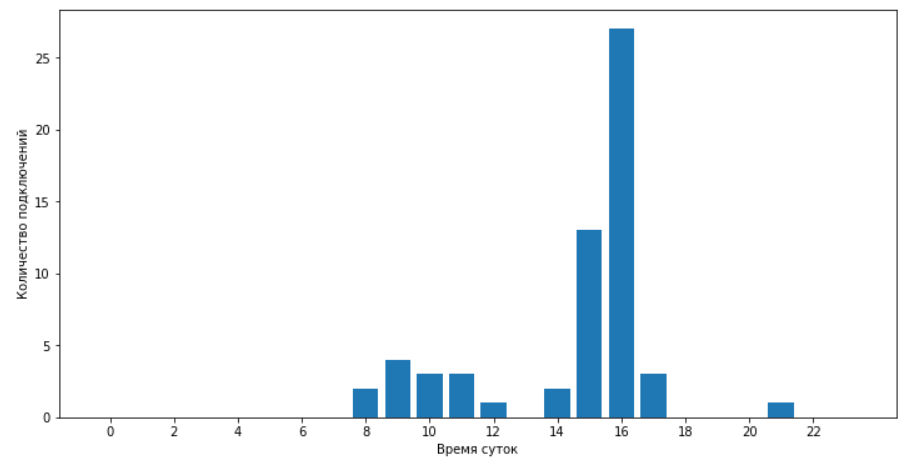 В ходе исследования мы изучили 59 сеансов подключений злоумышленников к зараженным системам (подчеркнём: речь идёт не об автоматизированной работе вредоносного ПО, а именно о случаях, когда злоумышленник подключался к зараженной системе и вводил команды вручную). Оказалось, что время дня, в которое производилось подключение, во всех случаях (за исключением одного) попадает в промежуток между 8 утра и 5 вечера по часовому поясу GMT+8, в котором расположен Китай (также, как и ряд других стран).