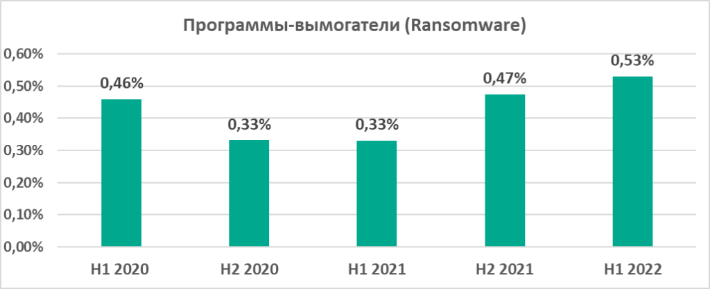 Отметим также, что процент компьютеров АСУ, на которых были заблокированы программы-вымогатели, в первом полугодии 2022 оказался самым высоким в период первое полугодие 2020 – первое полугодие 2022. За год этот процент вырос на 0,2 п.п. Разница может показаться незначительной, но на деле это означает повышение риска серьезных финансовых потерь для сотен атакованных промышленных компаний.