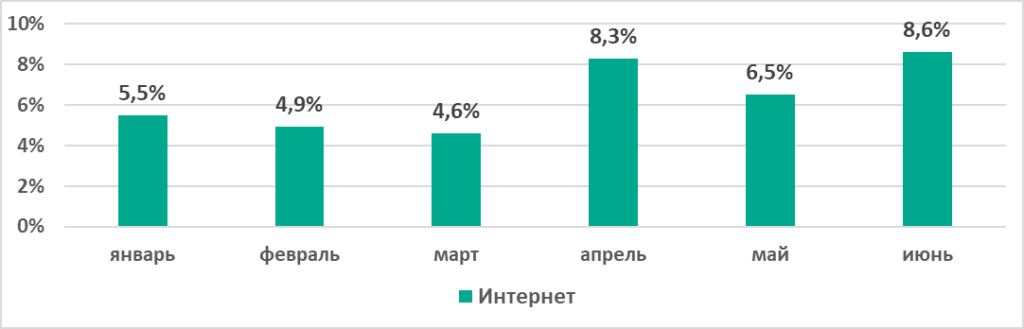 - Ресурсы в интернете из списка запрещенных – на 4,0 п.п.;