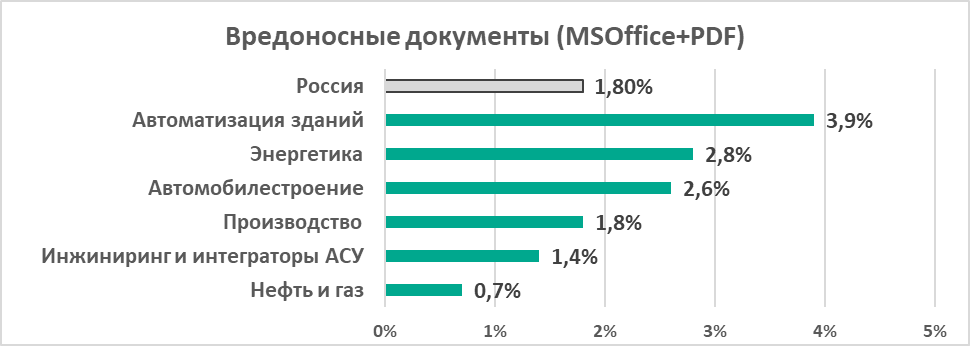 - Вредоносные документы (MSOffice+PDF), которые распространяются как вложения в фишинговых письмах (2,8%).