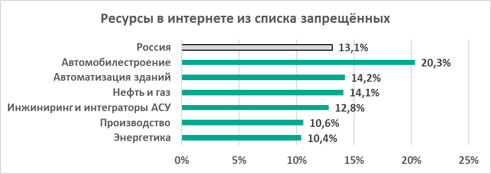 Производство лидирует по проценту компьютеров АСУ, на которых были заблокированы: