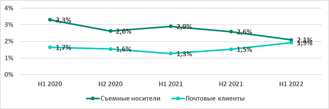 - Ресурсы в интернете из списка запрещенных – на 4,0 п.п.;