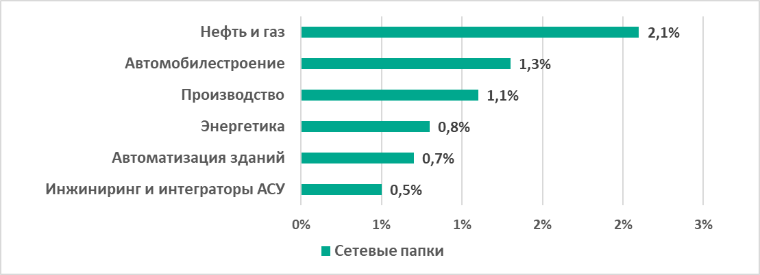 Производство лидирует по проценту компьютеров АСУ, на которых были заблокированы: