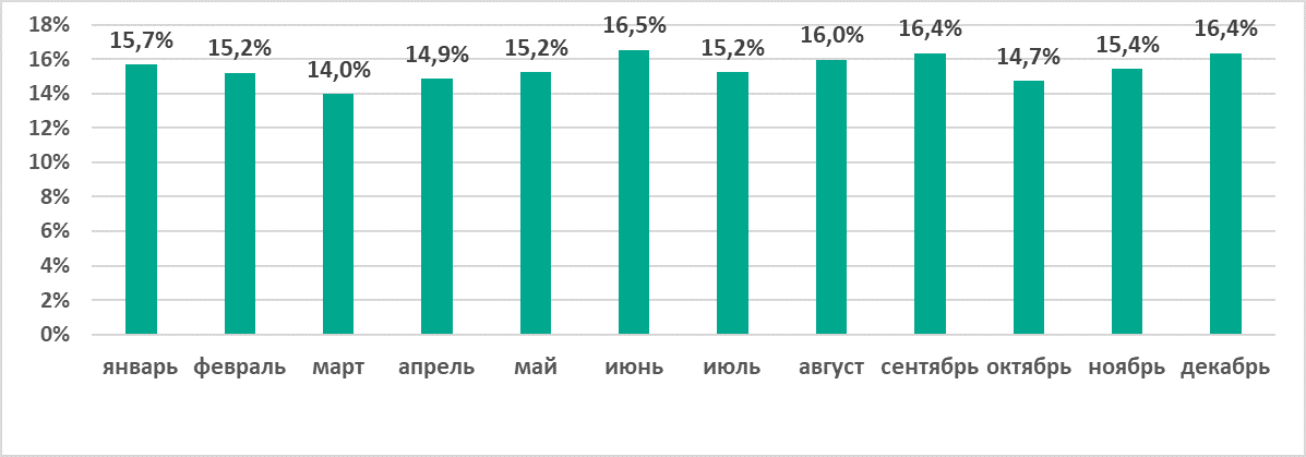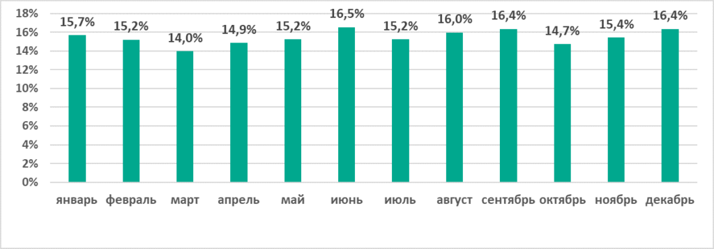 Самыми «горячими» месяцами года стали июнь, сентябрь и декабрь. Наименьшие значения были отмечены в марте и октябре.