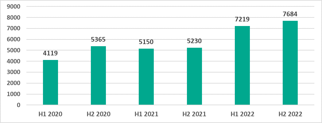 | Показатель | H1 2022 | H2 2022 | 2022 |