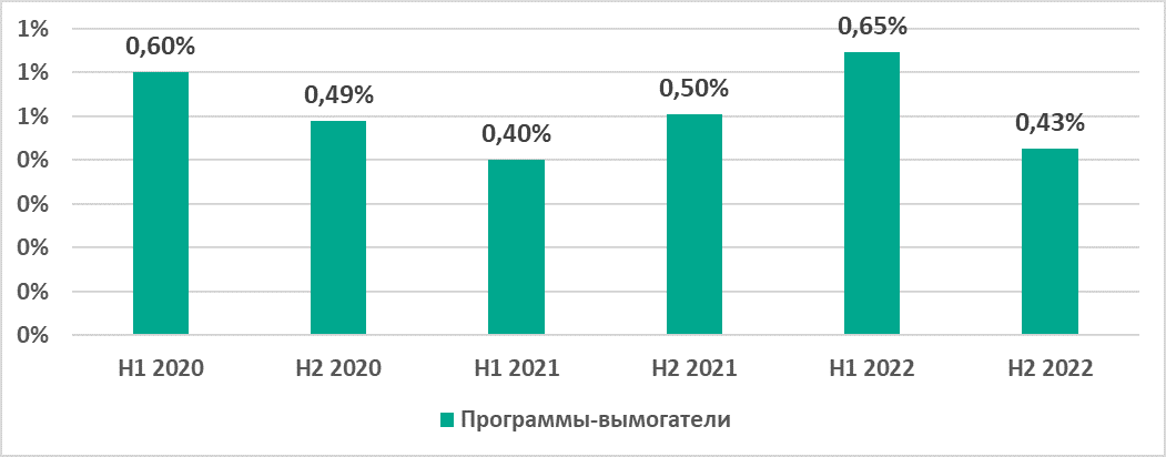 | Программы-вымогатели | 0,6% | 0,4% | 0,7% |