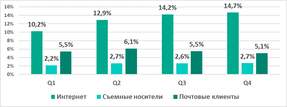 | Съемные носители | 3,5% | 3,8% | 5,2% |
