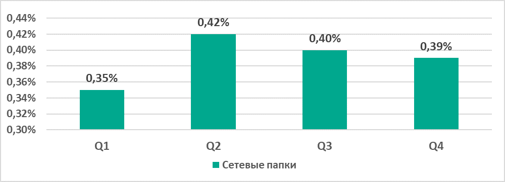 | Сетевые папки | 0,6% | 0,6% | 0,8% |