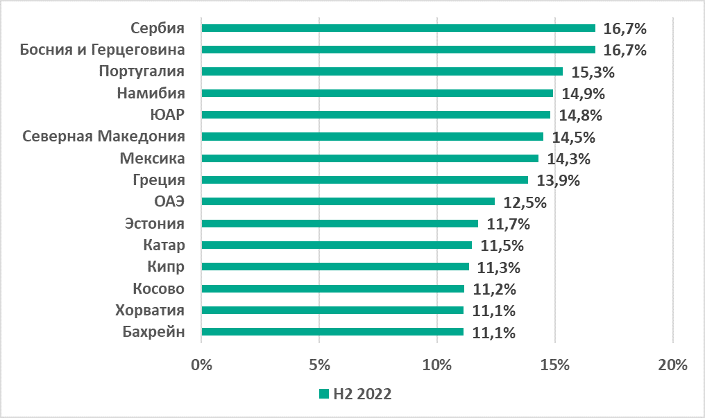 Отметим, что по итогам полугодия в этот рейтинг попала и одна европейская страна — Северная Македония.
