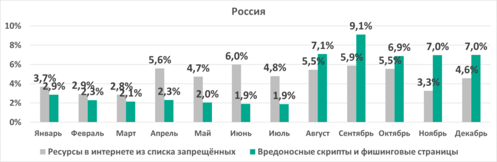| Ресурсы в интернете из списка запрещённых | 9,5% | 10,1% | 13,2% |