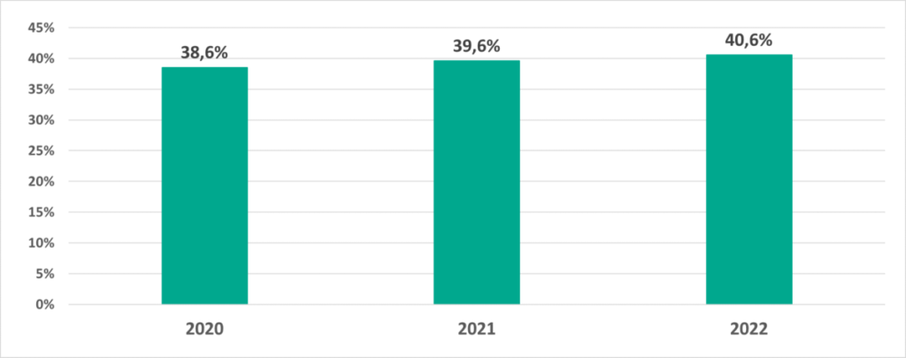 По итогам 2022 года процент компьютеров АСУ, на которых были заблокированы вредоносные объекты, составил 40,6%. Как и в 2021 году, он увеличился по сравнению с предыдущим годом на 1 п.п.