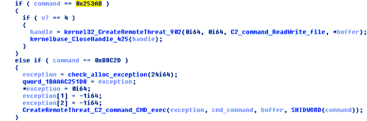 Образцы для архитектуры x64 имеют функции закрепления в системе и двухэтапный протокол взаимодействия с командным сервером. Они поддерживают длинный перечень команд, в том числе: