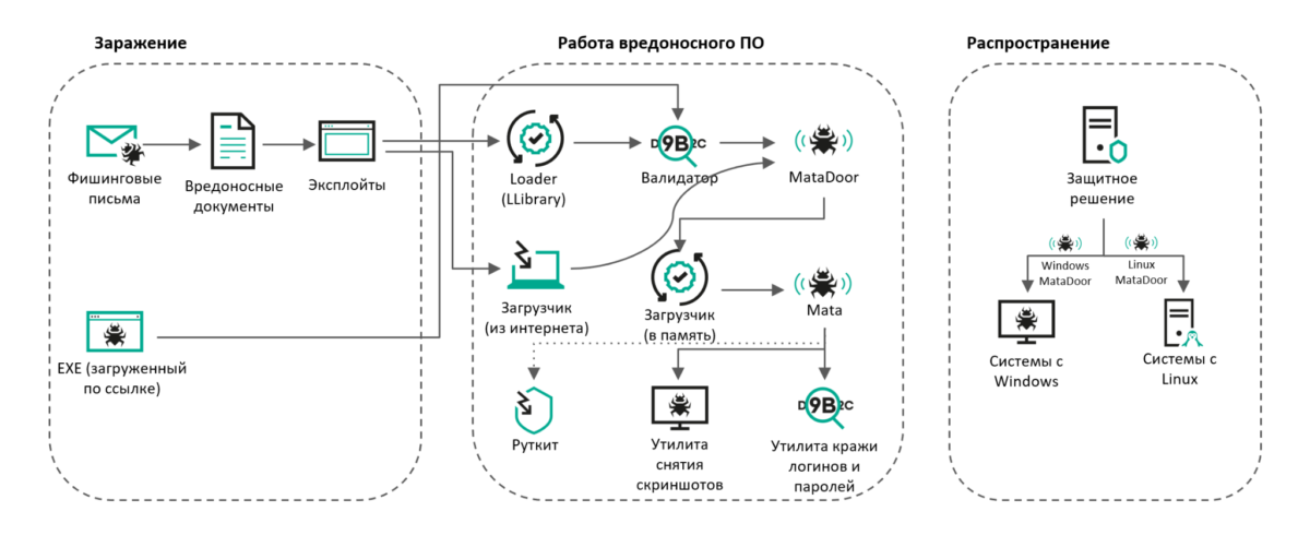 Для распространения новой версии MATA злоумышленники использовали целевой фишинг, а на этапе заражения применяли специальный компонент вредоносного ПО — валидатор, который позволял им определять, интересна ли атакованная система для развития атаки.
