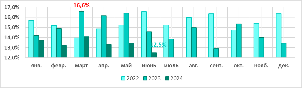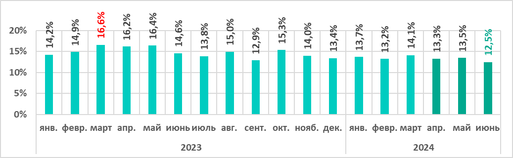 Более того, в июне 2024 года этот показатель был самым низким за период с 2022 года до конца первой половины 2024 года.