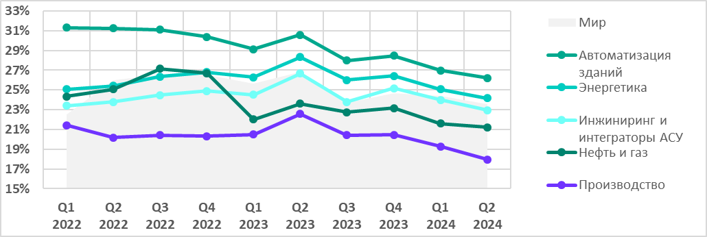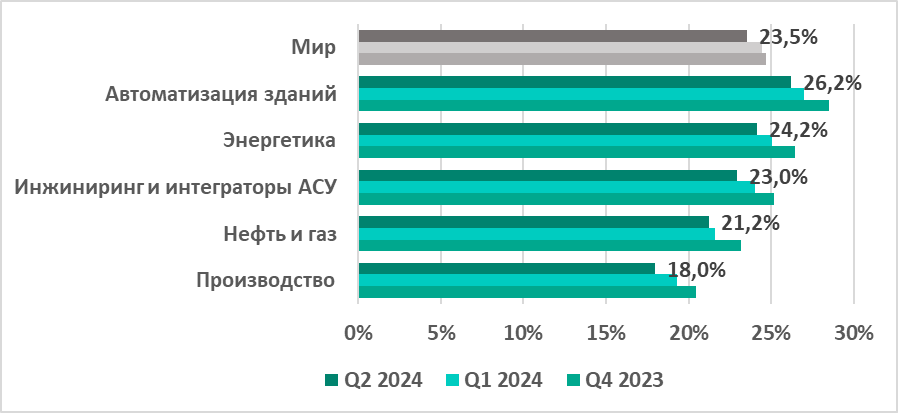 | Процент атакованных компьютеров АСУ в мире | 24,4% | 23,5% | -0,9 п.п. |
