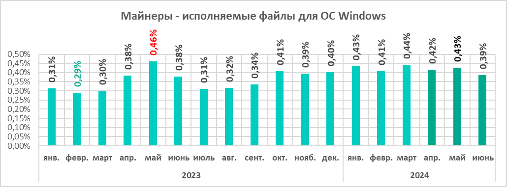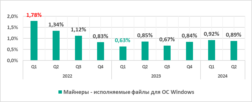| Майнеры — исполняемые файлы для ОС Windows | 0,92% | 0,89% | -0,03 п.п. |