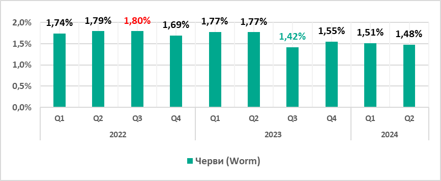 | Черви (Worm) | 1,51% | 1,48% | -0,03 п.п. |