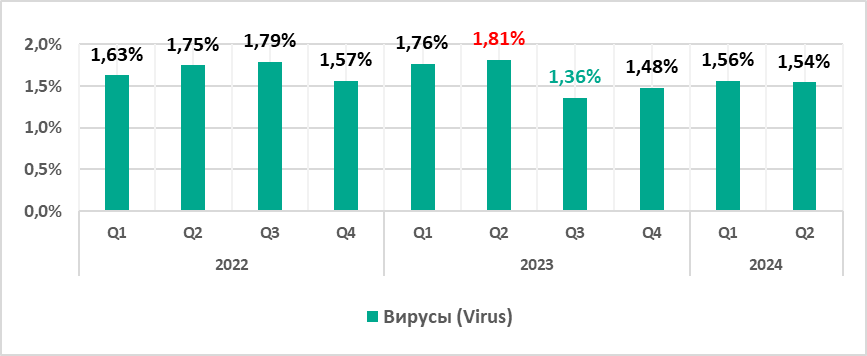 | Вирусы (Virus) | 1,56% | 1,54% | -0,02 п.п. |