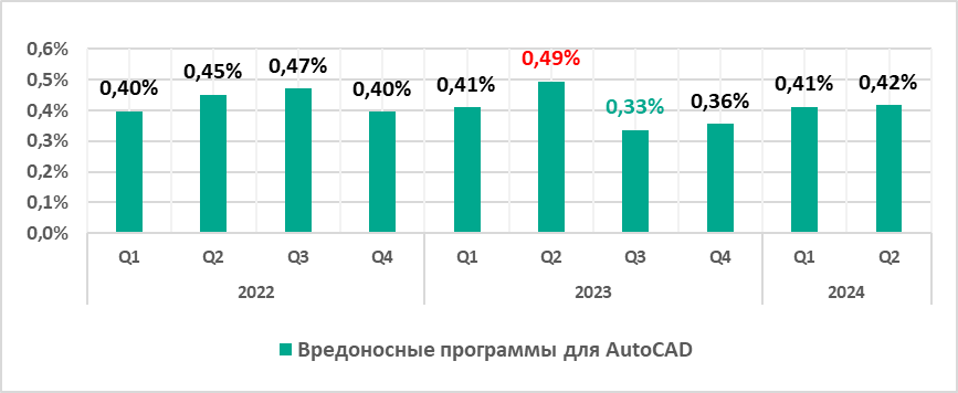 | Вредоносные программы для AutoCAD | 0,41% | 0,42% |