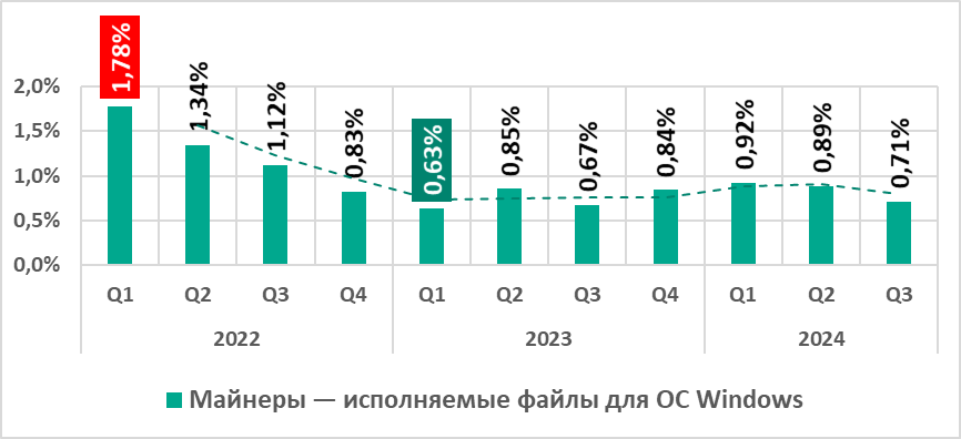 | Майнеры — исполняемые файлы для ОС Windows | 0,89% | 0,71% | -0,18 п.п. |