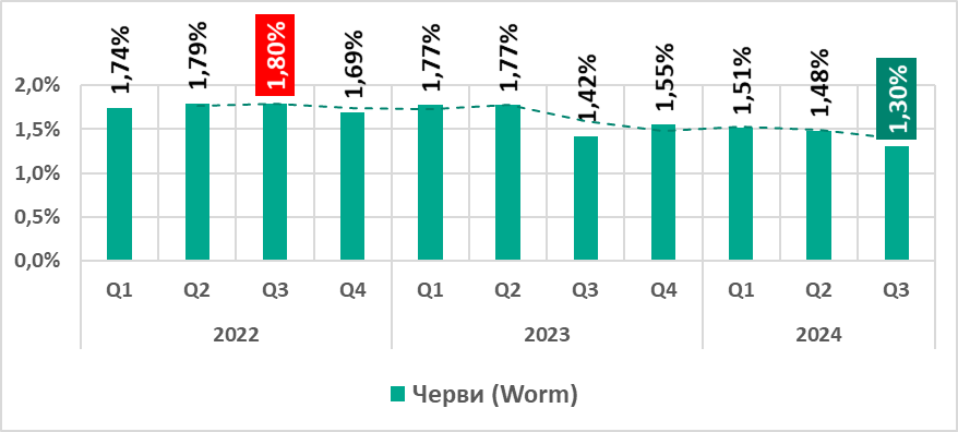 | Черви (Worm) | 1,48% | 1,30% | -0,18 п.п. |