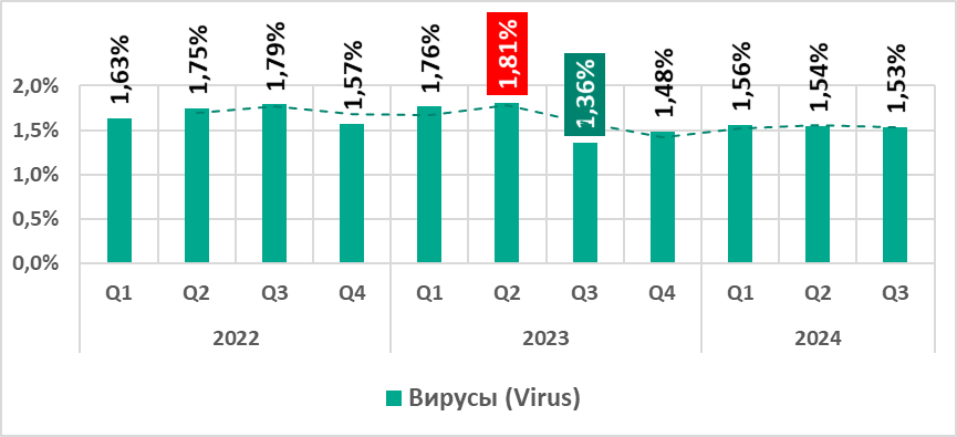 | Вирусы (Virus) | 1,54% | 1,53% | -0,01 п.п. |